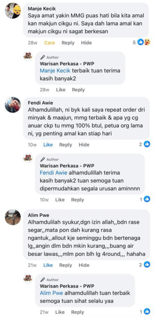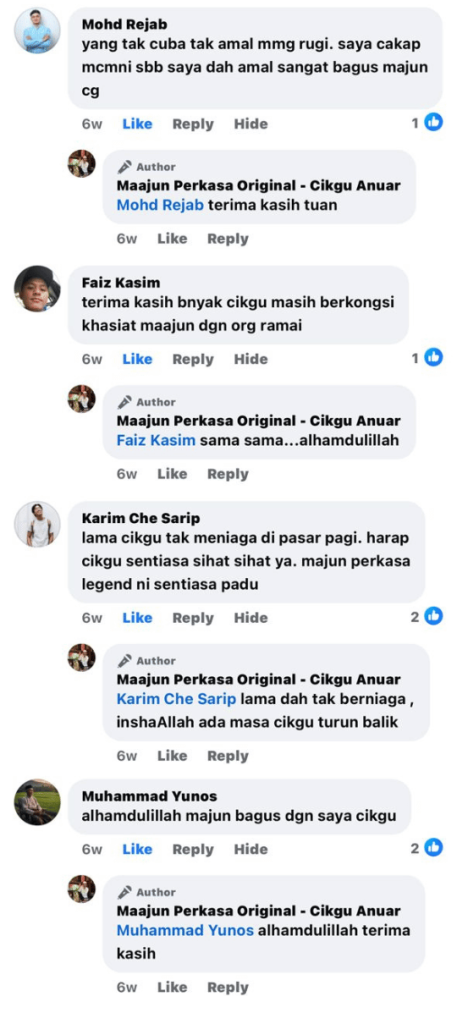 Maklum balas ini dikongsi oleh pelanggan yang mengamalkan maajun ini secara konsisten.