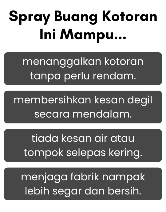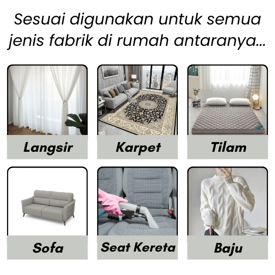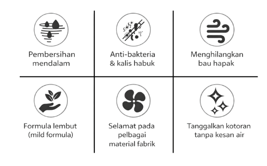 Produk ini menggunakan formula pembersihan mendalam yang mampu menembusi fabrik untuk menanggalkan kotoran dari dalam, bukan sekadar di permukaan.